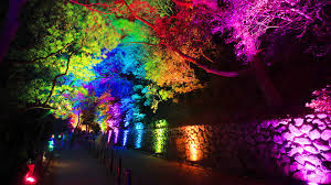 昼間は海と桜の絶景、夜はライトアップで幻想的な風景が広がります。