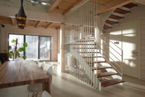 でも反対に『断熱・気密性が高い家』だと、家の中の間仕切りを少なくした開放的な空間で、少ないエアコンで家中快適にすることができます。一つのお家が一つのお部屋というイメージですね。吹き抜けがあったり、内部のドアを少なくした、お家の中が一つに繋がっている空間のほうが空調を効率的に行うことができます。なので、高性能住宅と吹き抜けは相性がいいのです。