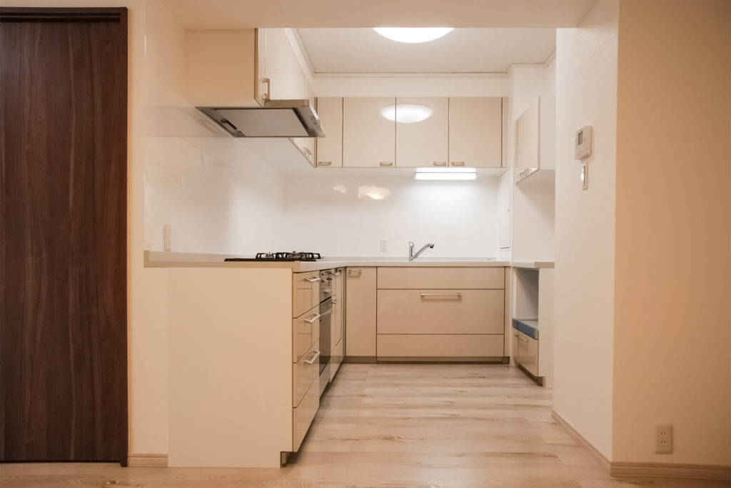 白を基調に、使いやすさを再構築したコの字型キッチン