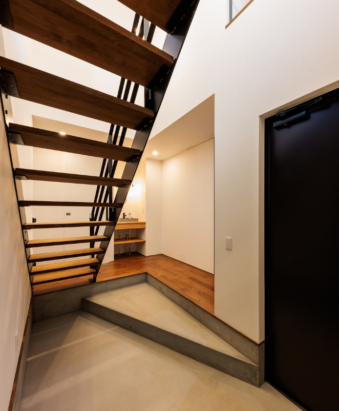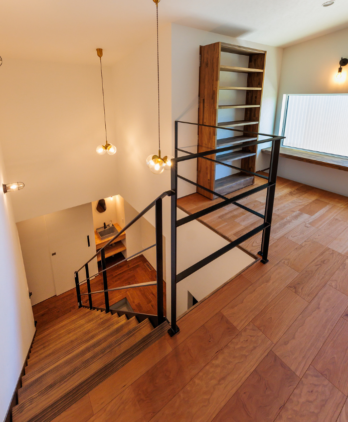 新築 趣味も暮らしも楽しむ 釣り好き夫婦のガレージハウス N様邸 大きなガレージと趣味室を行き来できる動線と、勾配天井の開放的なLDKの一角にはご主人様お手製の鋼板で織りなすオリジナル壁が魅力的な住まい。 物件概要 延床面積156.91㎡(47.46坪) 前へ 施工事例一覧 次へ