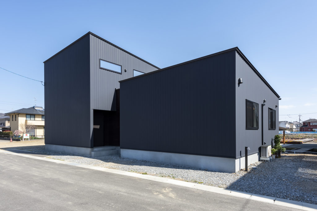 中庭を挟んでプライバシーを守りつつ、呼吸が感じられる。親子三代が暮らす二世帯住宅