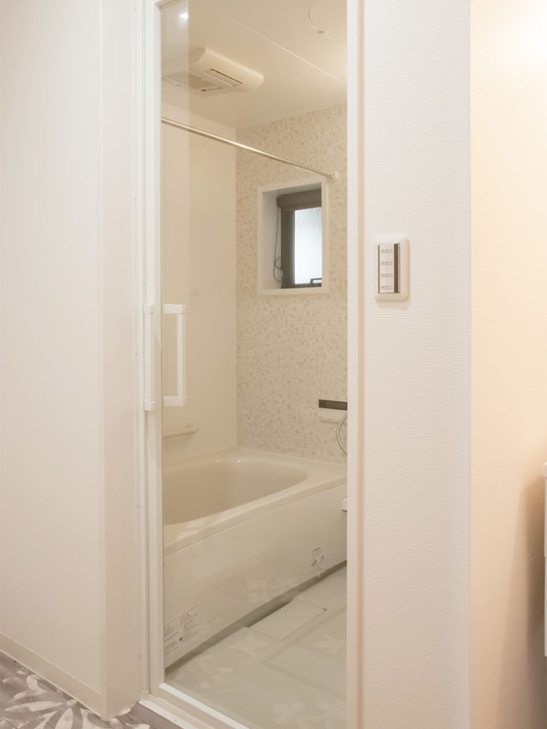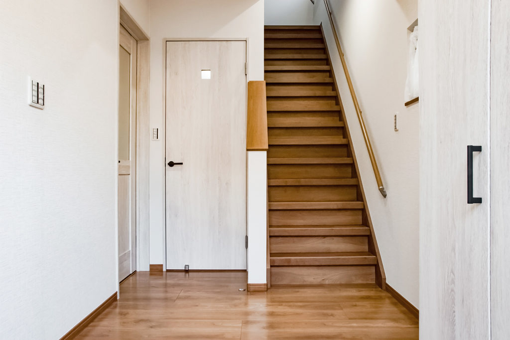 建具や内装は、白をベースにほんのりムラ感のあるニュアンスカラーで統一。
