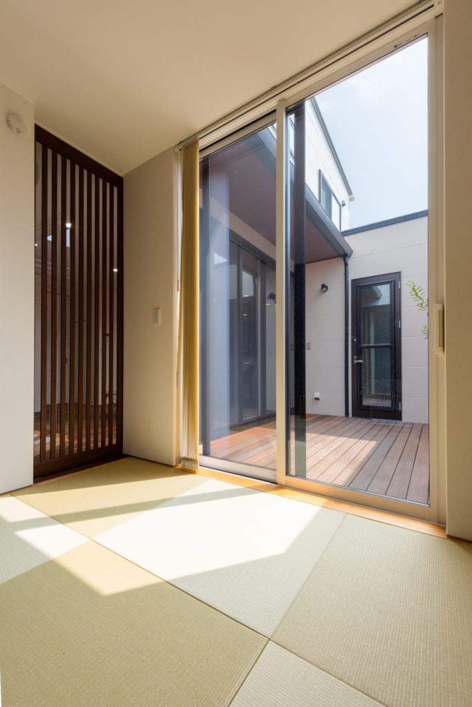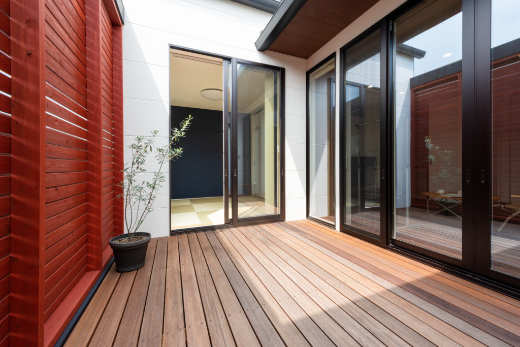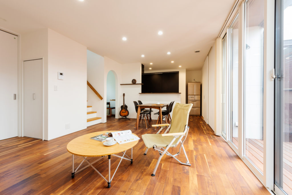 新築 家族の健康が守れる家、楽しみが増える家 O 様邸 ウッドデッキブラックウォールナット和室 「楽しみが増える家。その上で、デザインにもこだわりたい。」というのがお施主様のご希望でした。落ち着いた深みがある色合い、木目が特徴のブラックウォールナットの床で高級感のある洗練された LDK。和室とウッドデッキをつなげることで広々とした空間を演出し、明るさとプライベートを確保しました。 物件概要 延床面積37.07 坪(122.55㎡) 前へ 施工事例一覧 次へ
